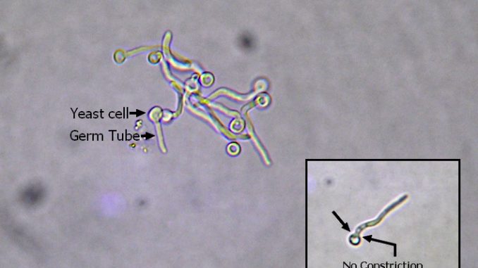 - After incubation in serum for about 90 minutes at 370C, yeast cells of albicans will begin to form true hyphae or germ tubes and on nutritionally deficient media it produces large, spherical chlamydospores.