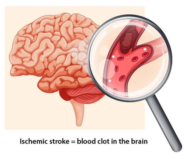 - Clogging of an artery in the brain due to blood clot leads to an ischemic stroke.The condition that increases our chances of ischemic stroke is atherosclerosis, where plaque builds up on the arterial walls.