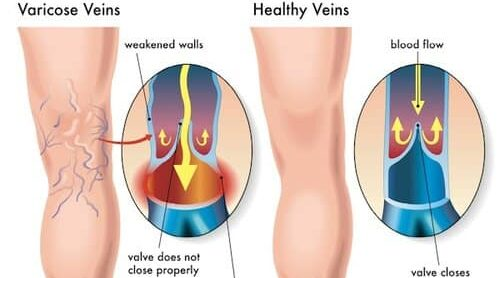 To help this process, veins contain one-way valves that prevent blood from flowing backward. When these valves weaken or stop functioning properly, blood begins to flow in the opposite direction and collects in the veins. This pooling of blood causes veins to stretch, swell, and twist, leading to the formation of varicose veins.